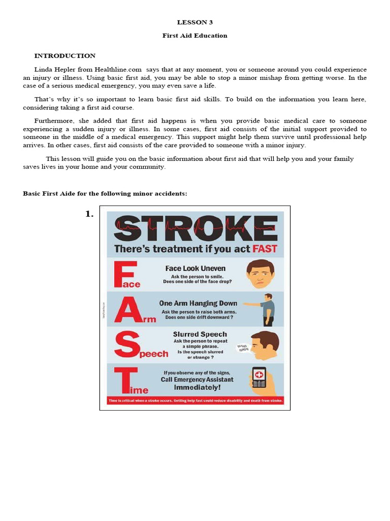 This lesson will guide you on the basic information about first aid that will help you and your family