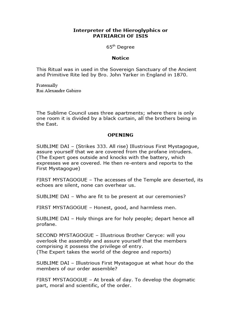 Council, duly opened as Interpreters of the Hieroglyphics, Patriarchs