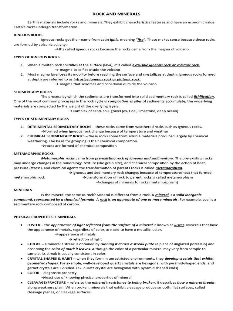 Earth’s materials include rocks and minerals. They exhibit characteristics features and have an economic value.