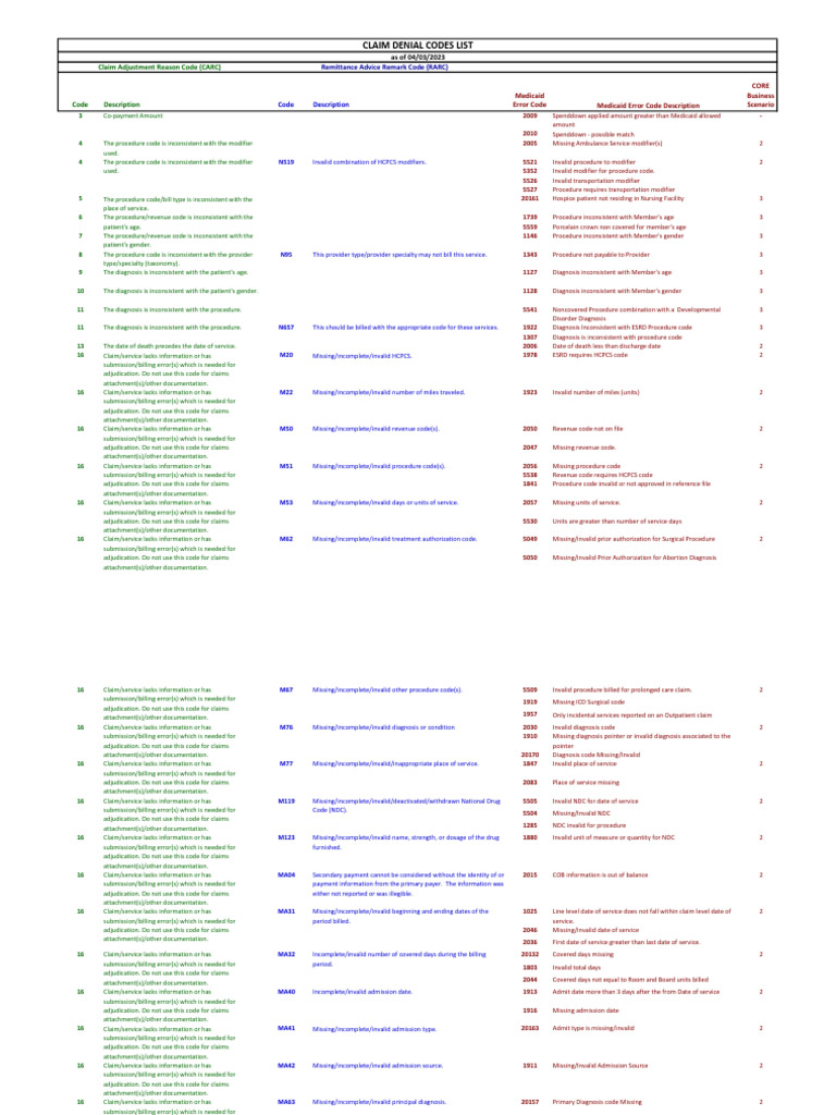 Claim Adjustment Reason Code (CARC) Remittance Advice Remark Code (RARC)