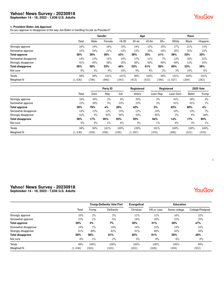 A Yahoo! News survey of 1,636 U.S. adults from September 14-18, 2023 found: