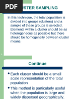Cluster sampling is a probability sampling technique where researchers divide