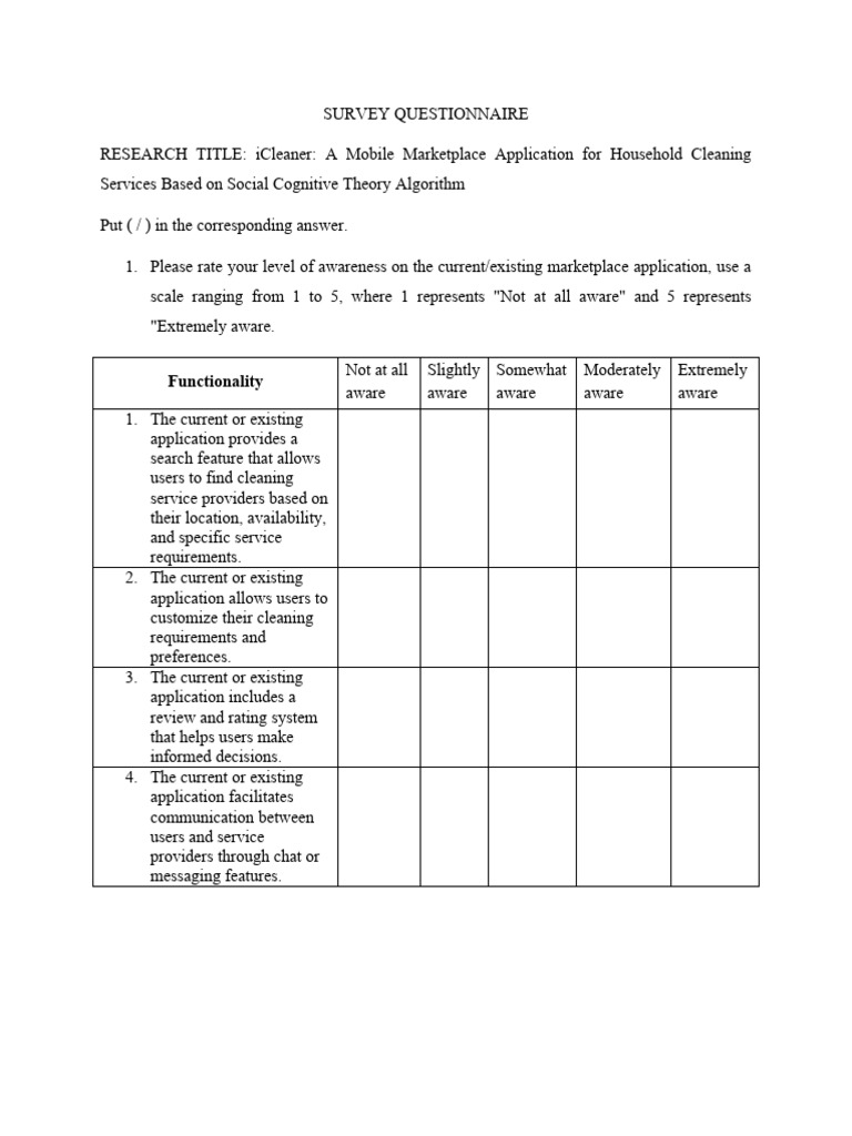 RESEARCH TITLE: iCleaner: A Mobile Marketplace Application for Household Cleaning