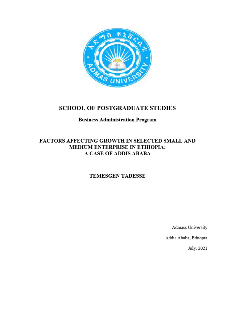 Ermias. (2011). A study on financial source of micro and small enterprise, Gulele subcity. Addis Ababa.