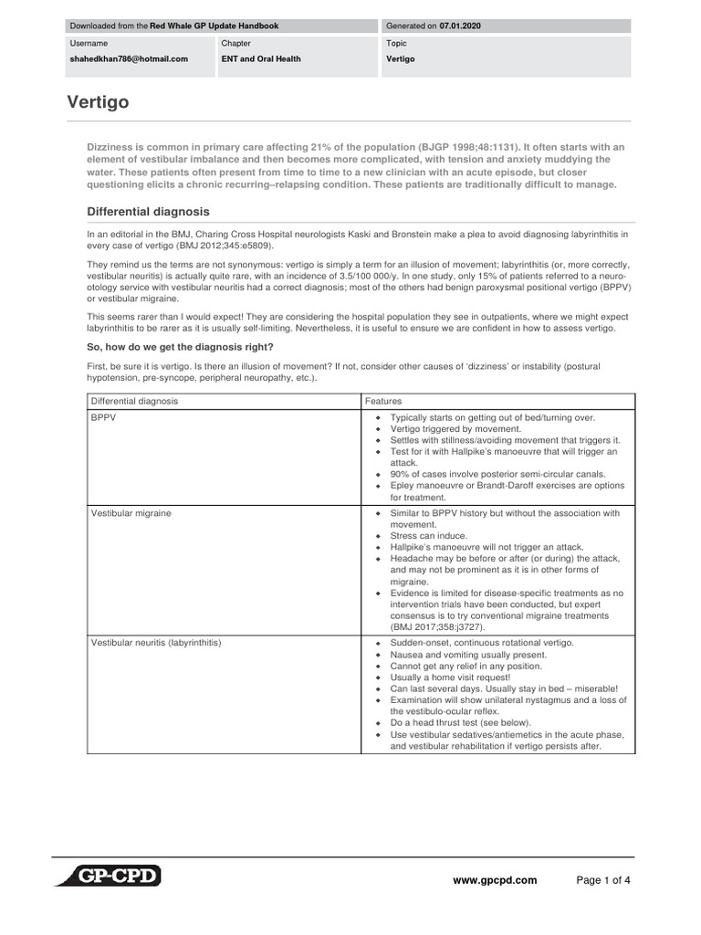 shahedkhan786@hotmail.com ENT and Oral Health Vertigo