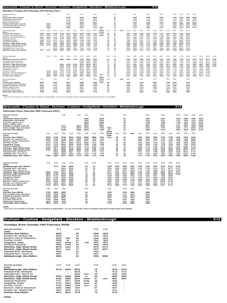Durham - Coxhoe - Sedgefield - Stockton - Middlesbrough X12