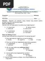 Pangkalahatang Panuto: Basahing mabuti intindihan ang bawat direksiyon . Lapis lamang ang gagamiti. Dapat