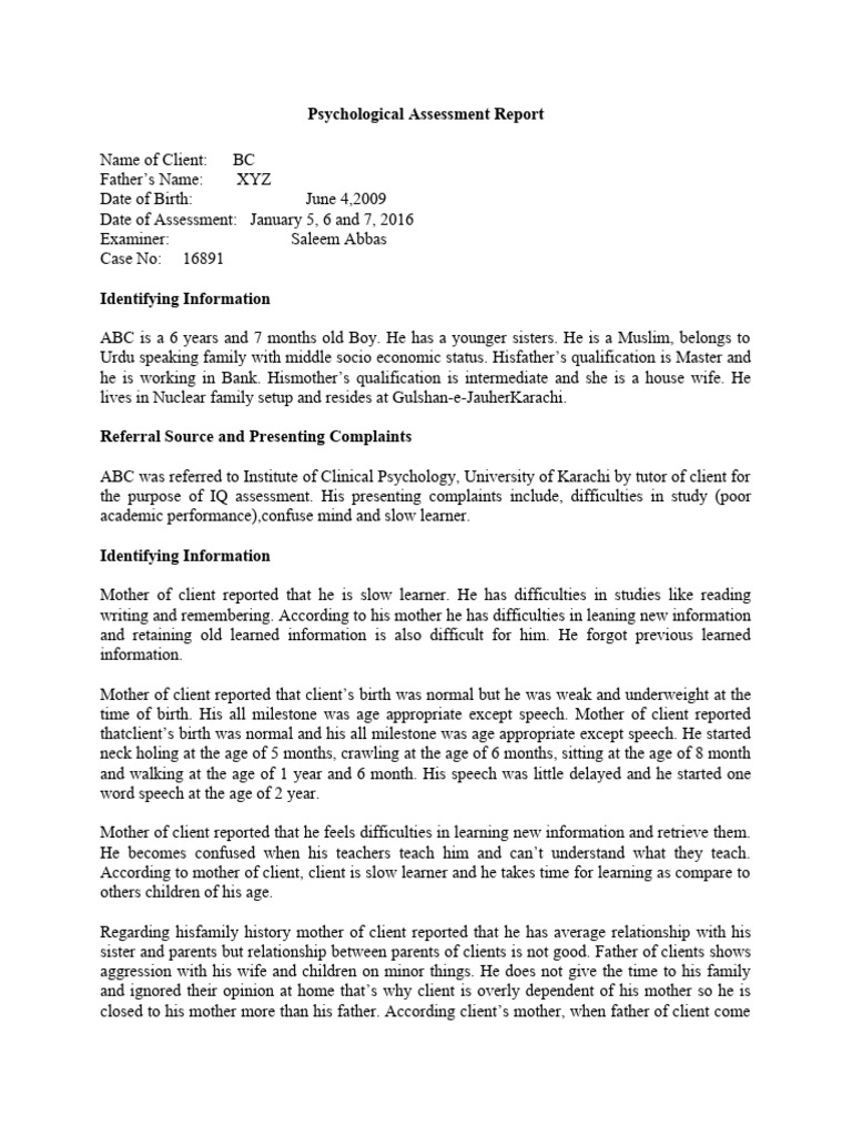 Psychological Assessment Report