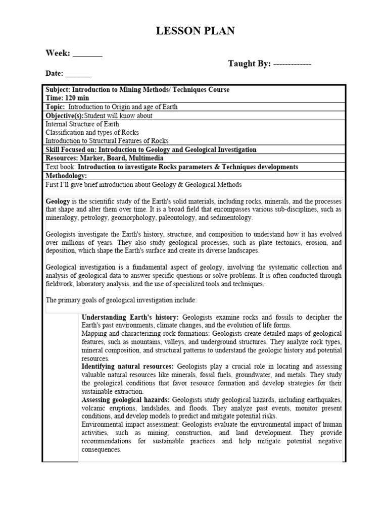 Skill Focused on: Introduction to Geology and Geological Investigation