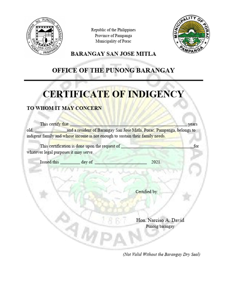 (Not Valid Without the Barangay Dry Seal)
