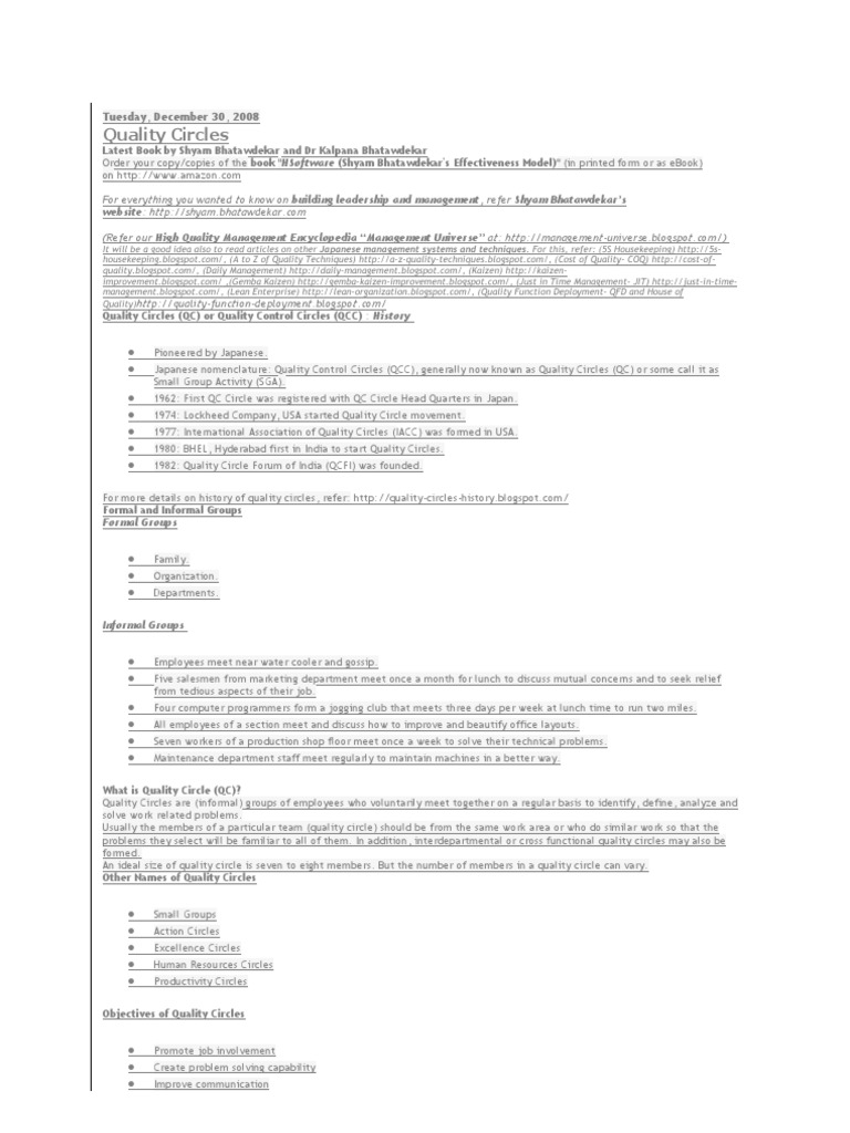 For more details on history of quality circles, refer: http://quality-circles-history.blogspot.com/ Formal and Informal Groups Formal Groups