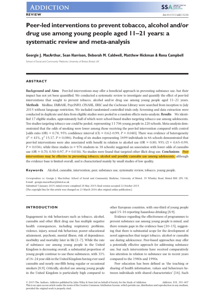 Keywords Alcohol, cannabis, intervention, peer, substance use, systematic review, tobacco, young people.