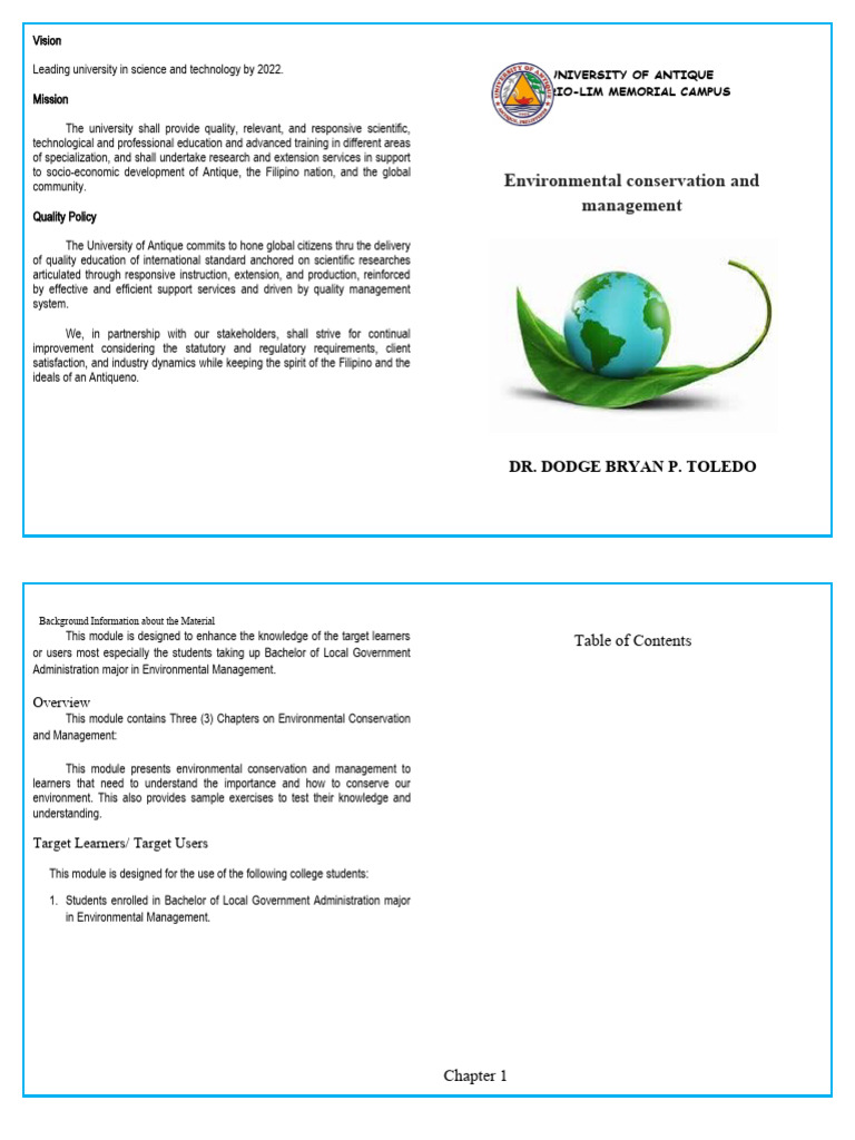 This module contains Three (3) Chapters on Environmental Conservation