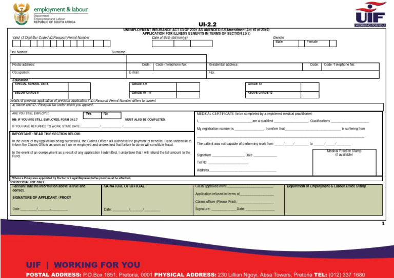 APPLICATION FOR ILLNESS BENEFITS IN TERMS OF SECTION 22(1)