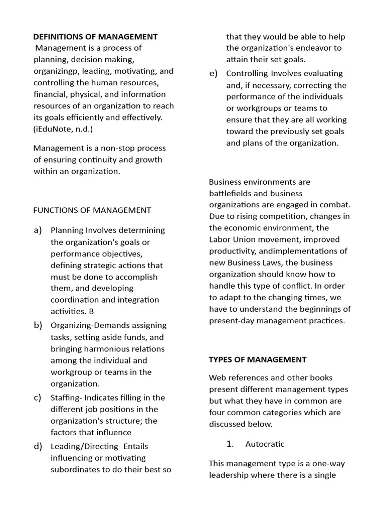 DEFINITIONS OF MANAGEMENT that they would be able to help