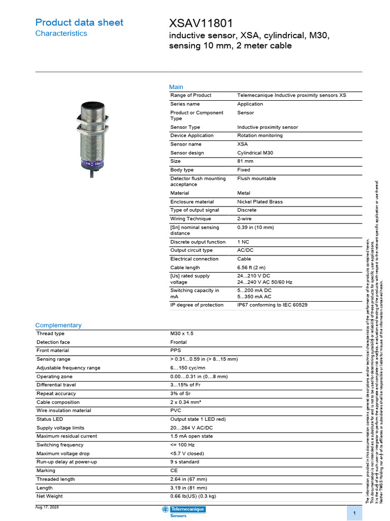 Characteristics inductive sensor, XSA, cylindrical, M30,