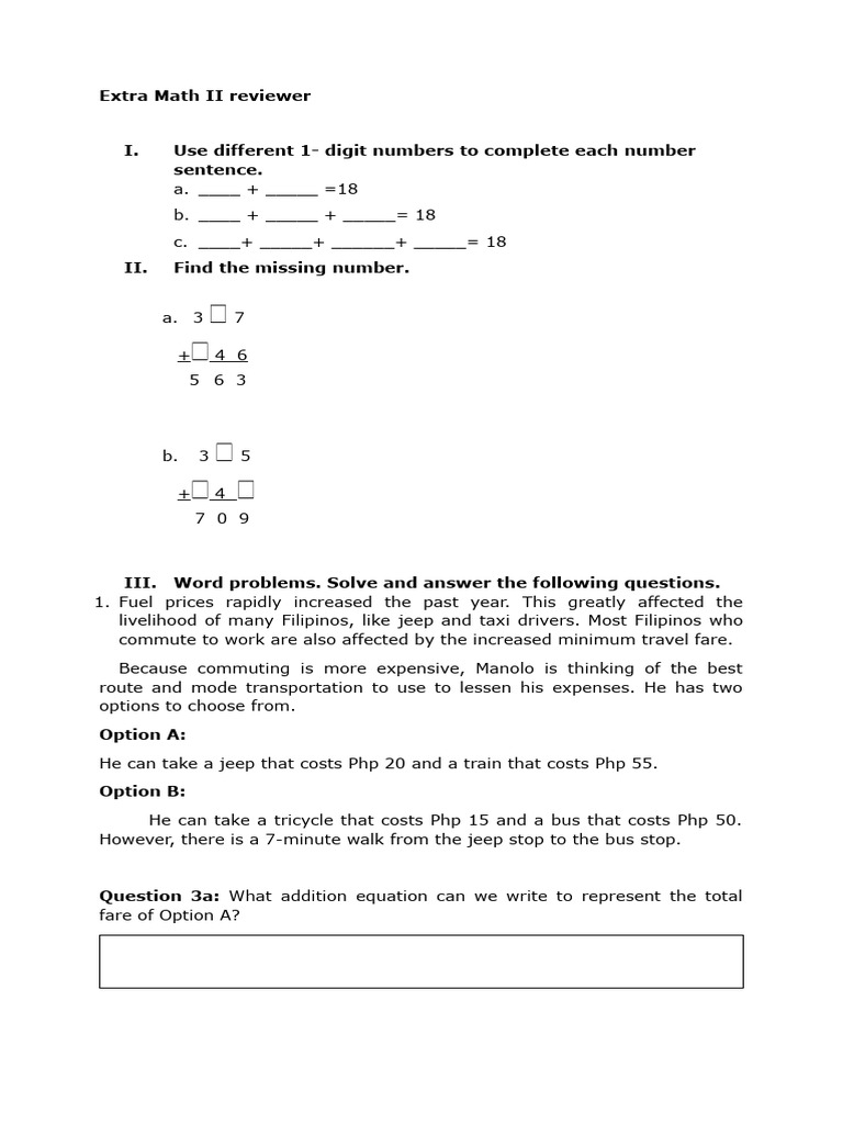 III. Word problems. Solve and answer the following questions.