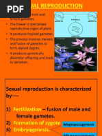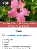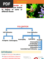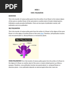 The document discusses a typical bisexual flower and compares self-pollination and cross-pollination, explaining how pollen grains are transferred from the anther of the male to the stigma of the female.