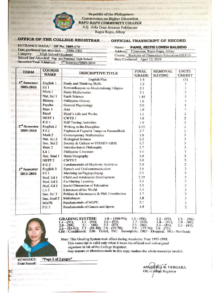 (Unis transcript is valid only when it bears