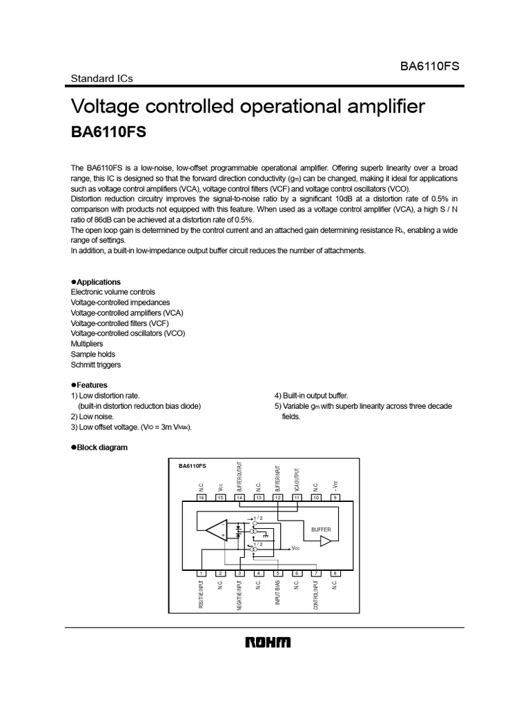 The BA6110FS is a low-noise, low-offset programmable operational amplifier. Offering superb linearity over a broad
