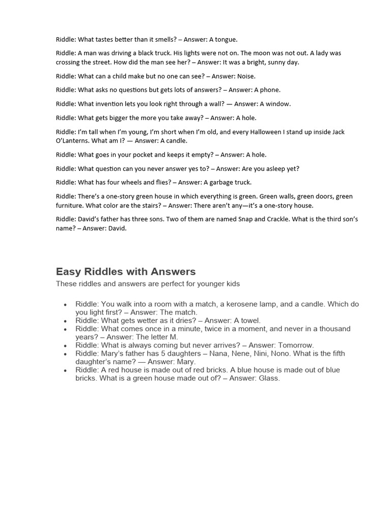 Riddle: What can a child make but no one can see? – Answer: Noise.