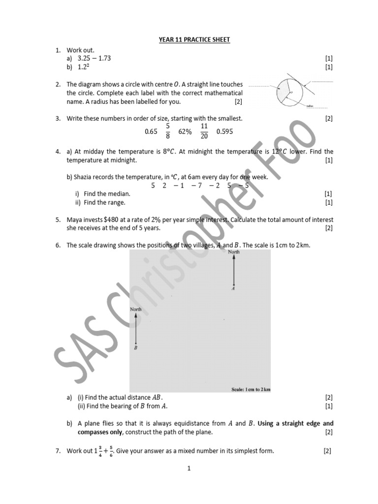 YEAR 11 PRACTICE SHEET