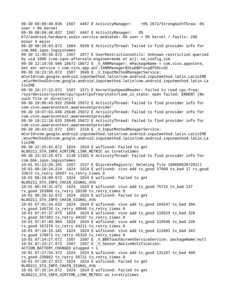 10-01 07:45:41.091 1024 1024 E wificond: vivo add tx_good 13060 tx_bad 13 rx_good