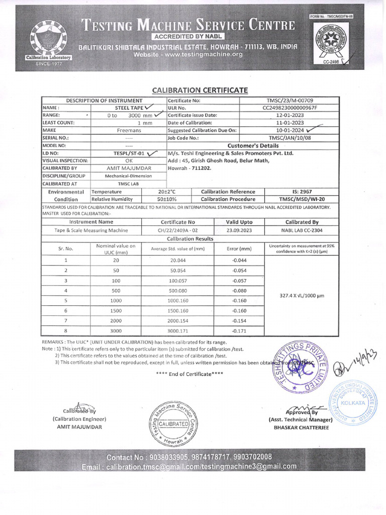 Email : calibration.tmsc@gmail,.com/testingmachine3@gmail.com