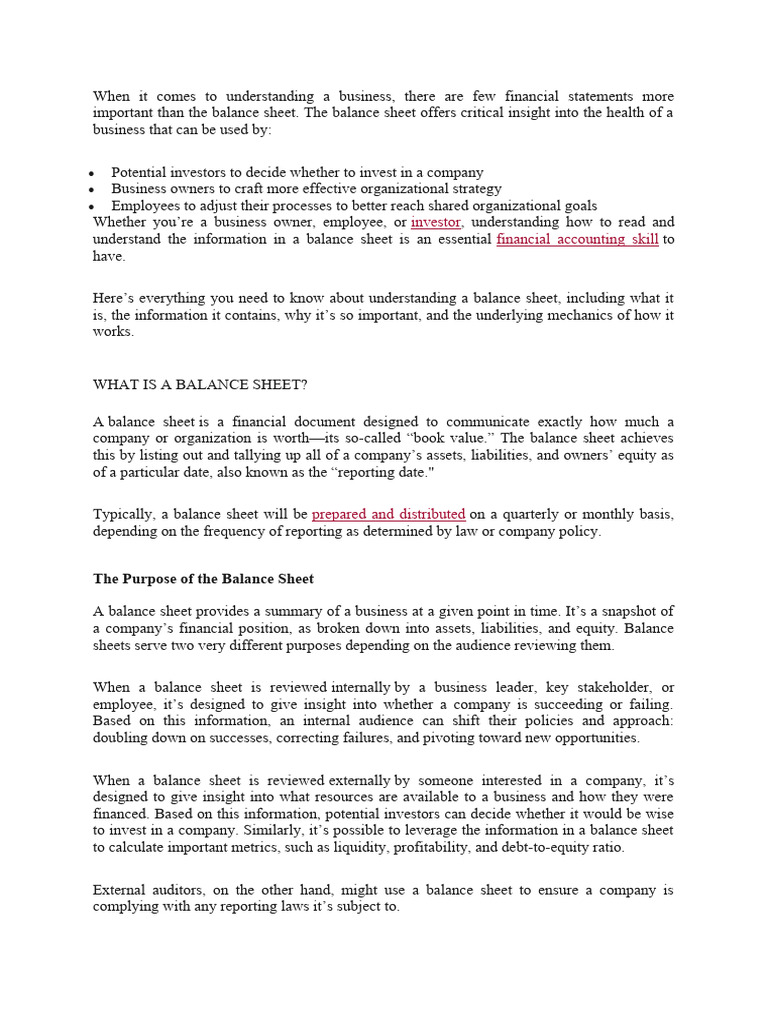 to invest in a company. Similarly, it’s possible to leverage the information in a balance sheet