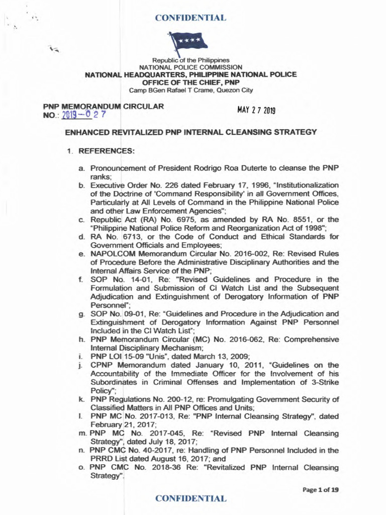 o. PNP CMC No. 2018-36 Re: "Revitalized PNP Internal Cleansing