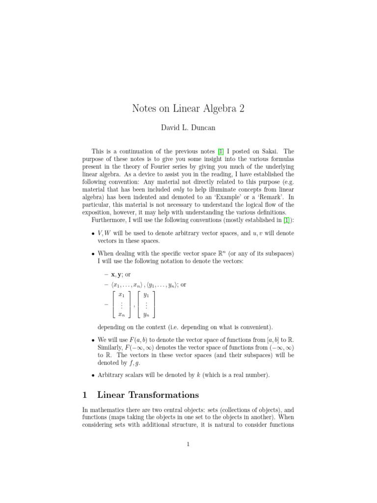 [1] D. Duncan. Notes on Linear Algebra. Unpublished. 2011.