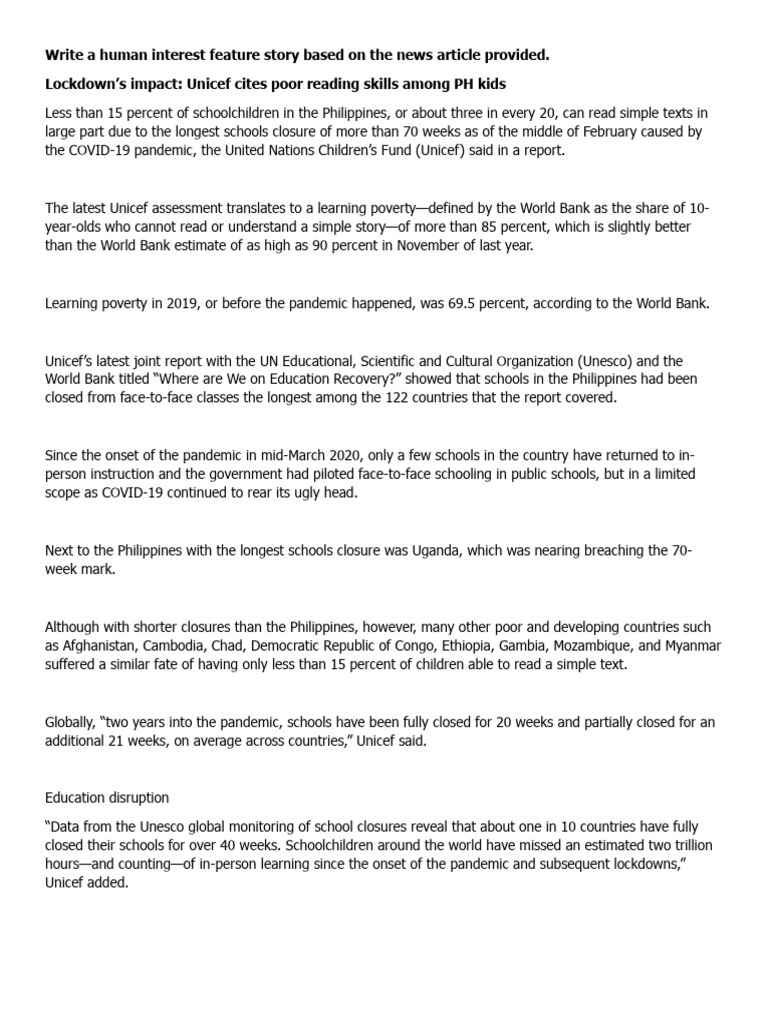 The latest Unicef assessment translates to a learning poverty—defined by the World Bank as the share of 10-