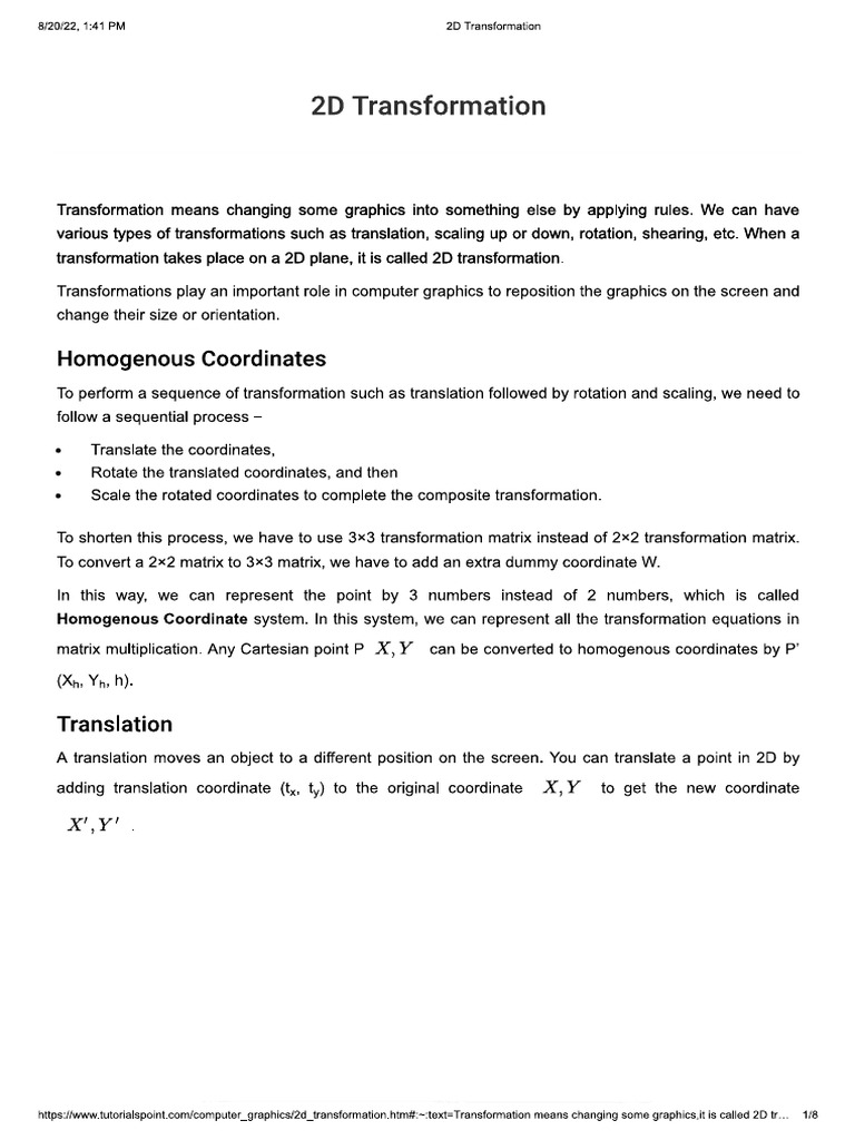 hitps www tutoralspoint.concomputer_graphies/26_transformation hims~text=Transformation means changing some graphics is called 20 t.. 6182720122, 141 PM 20 Transformation