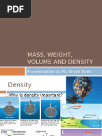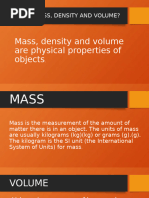 by an object. Unlike mass, volume changes according to the external conditions. Density refers