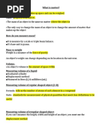 Measures the amount of matter present in an object Measures the three-dimensional space occupied by an