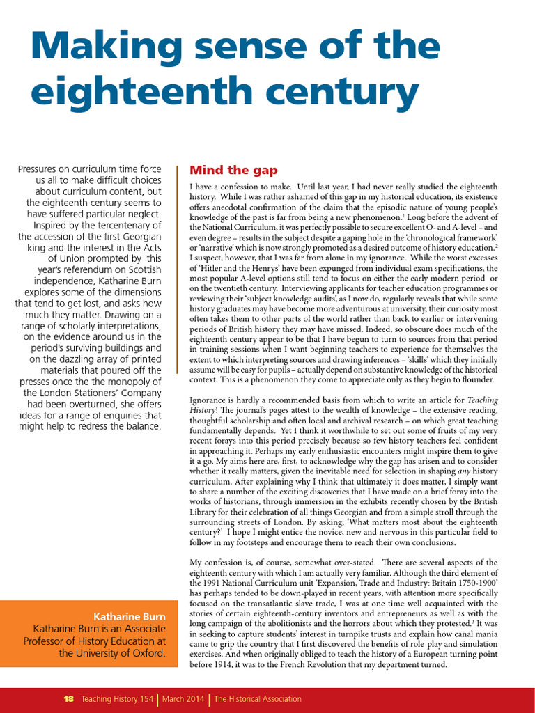 the accession of the first Georgian even degree – results in the subject despite a gaping hole in the ‘chronological framework’