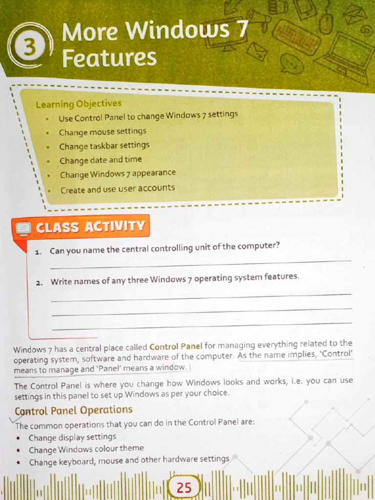 - Assessment Corner: An assessment section comprising questions to test understanding of the Windows 7 features covered.