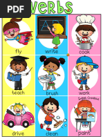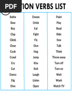 The document lists pairs of verbs and asks the reader to choose the correct action verb from each pair. It contains over 40 pairs of verbs where one verb in each pair is an action that can be seen or a transitive verb and the other is not or does not make sense in the context. The goal is to identify the appropriate action verb from each pair.