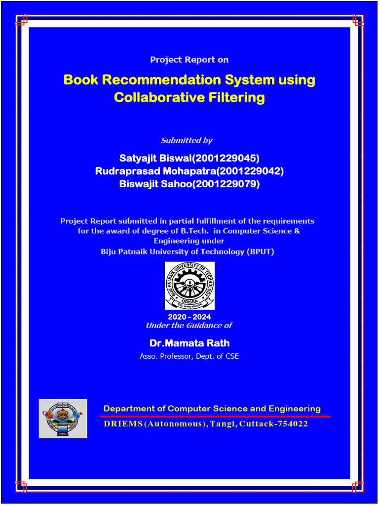 using Collaborative Filtering”, done satisfactorily by Satyajit Biswal (2001229045),