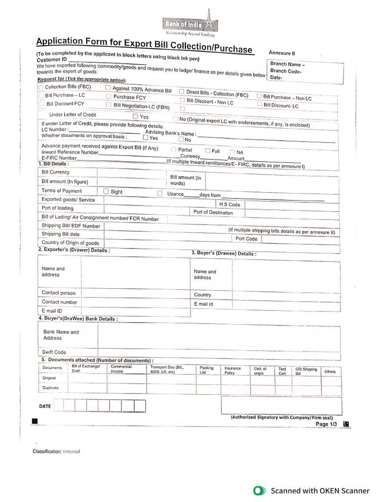 Application Form for Export Bi I Collection/Purchase ‘antes