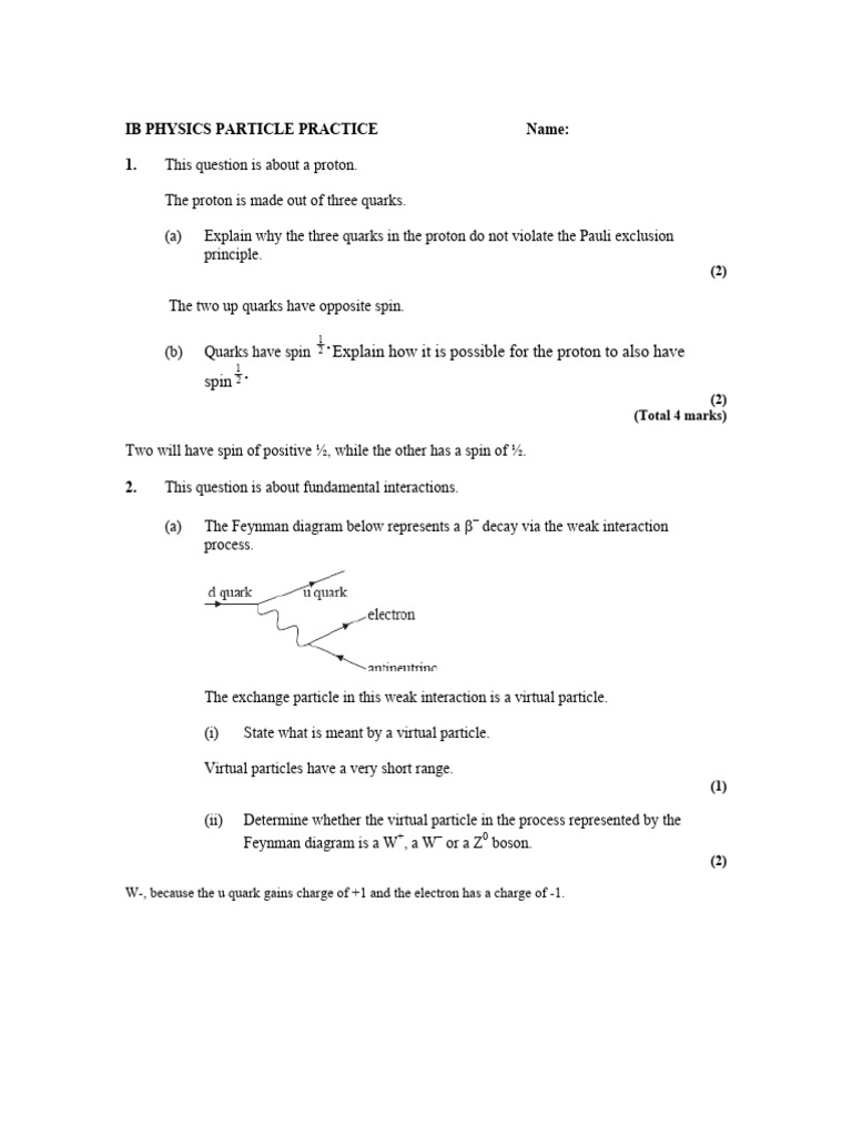 (b) (ii) to which class of elementary particles the electron belongs. [1]