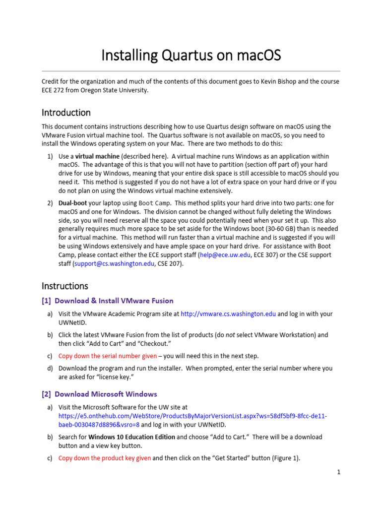 This document contains instructions describing how to use Quartus design software on macOS using the