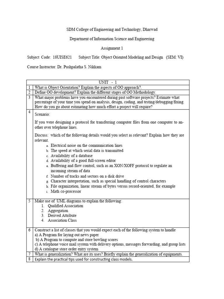 Subject Code: 18UISE621 Subject Title: Object Oriented Modeling and Design (SEM: VI)