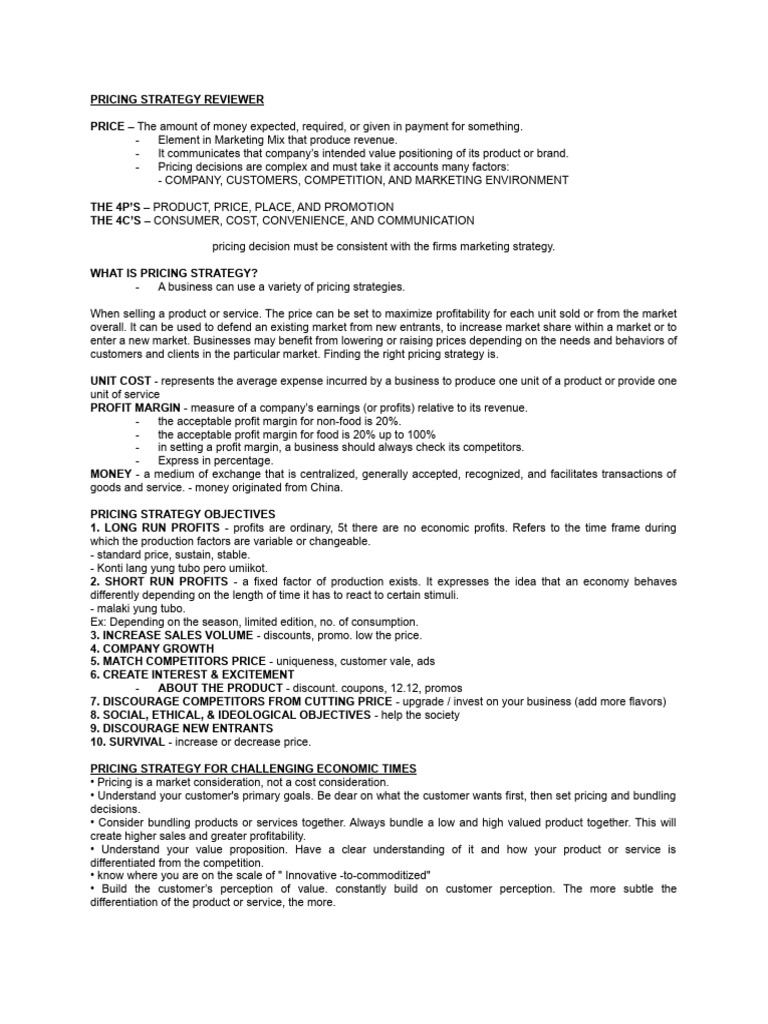 customers and clients in the particular market. Finding the right pricing strategy is.