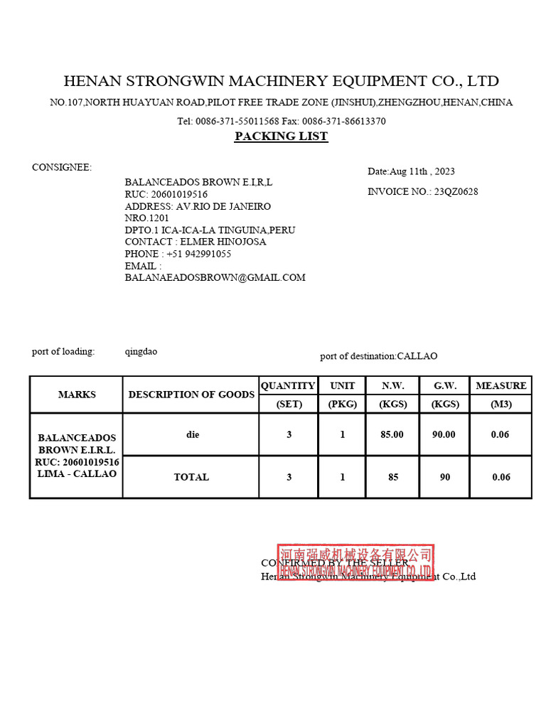 RUC: 20601019516 INVOICE NO.: 23QZ0628