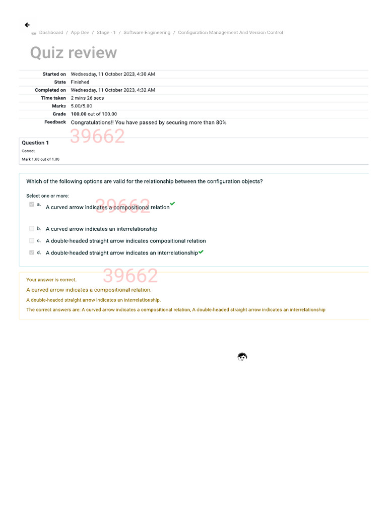 Feedback Congratulations! You have passed by securing more than 80%