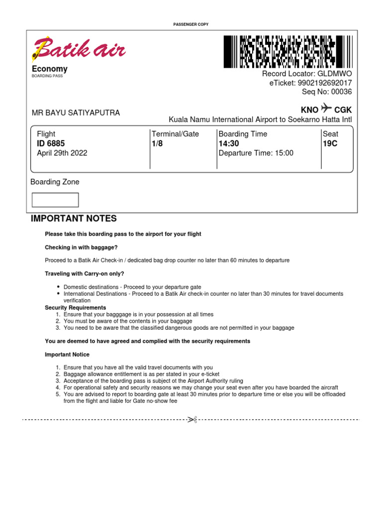 International Destinations - Proceed to a Batik Air check-in counter no later than 30 minutes for travel documents