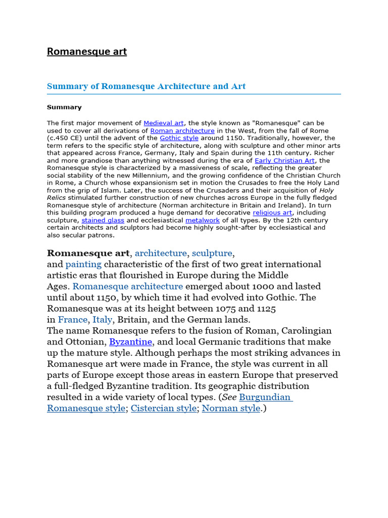 The first major movement of Medieval art, the style known as "Romanesque" can be