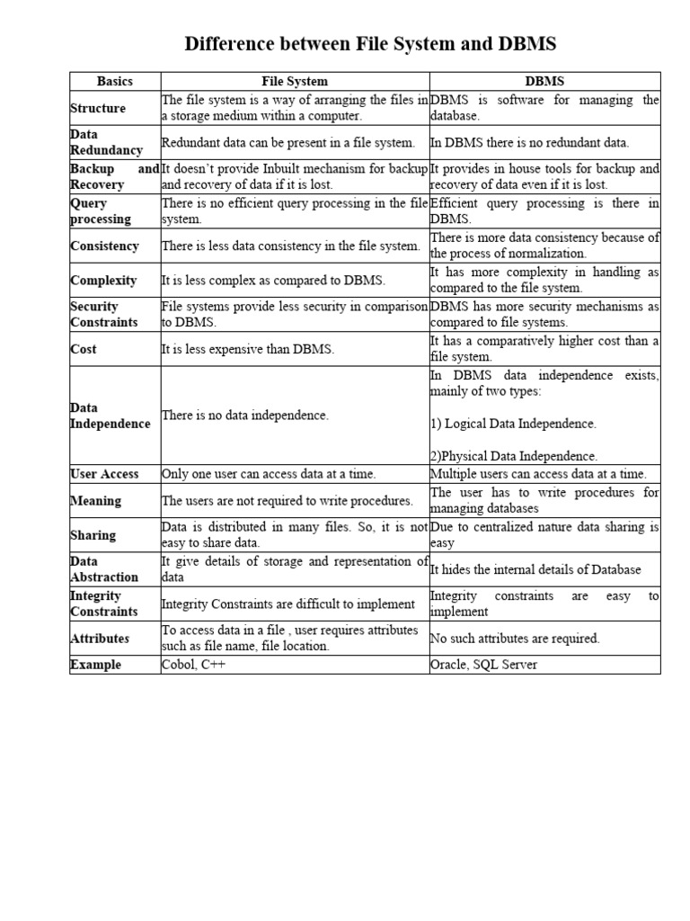Difference between File System and DBMS