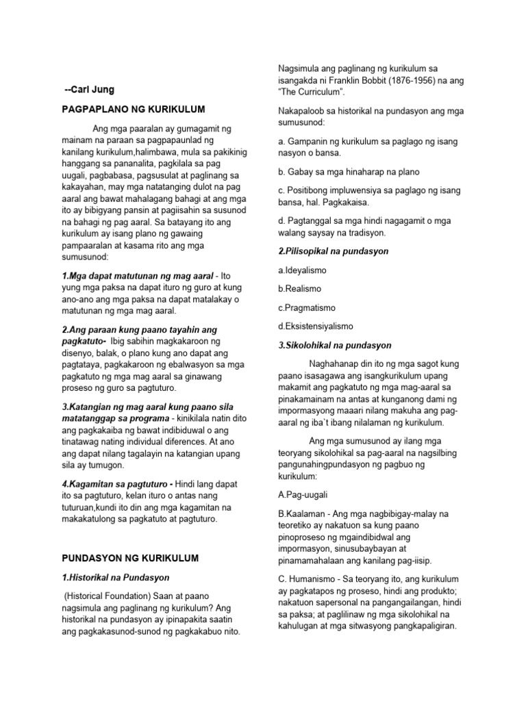 [Link] na Pundasyon C. Humanismo - Sa teoryang ito, ang kurikulum